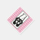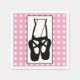 Des serviettes en papier avec l'illustration noire d'une danseuse de ballet pantoufles et ses pattes inférieures qui sont transparentes permettant la couleur de l'article à travers. Ballerina se tient sur ses orteils, en pointe. Arrière - plan est un motif en pois blanc sur rose.