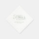 These diagonally printed cocktail napkins feature a stylish “Cheers” in elegant sage green calligraphy, paired with the couple’s names in classic serif and a modern formatted date. The white background keeps things clean and timeless, while the angled layout adds visual energy and sophistication to your table decor. Ideal for stylish weddings, engagement parties, and rehearsal dinners, this design delivers personalized charm with a minimal twist.