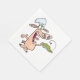 Un cochon tient une assiette de nourriture. Ce design semble vraiment efficace sur ces serviettes en papier