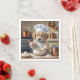 A playful golden retriever puppy, dressed as a chef, stands in a kitchen, mixing ingredients in a bowl.