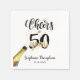 Célébrez n'importe quel anniversaire d'âge avec ces amusants et festifs d'âge modifiable CHEERS TO # ANNÉES serviettes de fête d'anniversaire en noir et or avec une boisson festive d'une bouteille de vin, bière ou champagne, typographie manuscrite moderne et votre texte personnalisé. L'échantillon montre l'âge de 50 ans, mais peut être modifié à n'importe quel âge. Idéal pour les anniversaires adultes pour lui ou elle. Contactez le concepteur via Zazzle Conversation ou makeitaboutyoustore@gmail.com si vous souhaitez modifier ce design, sur un autre produit ou pour coordonner des éléments.