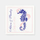 Serviette En Papier Cheval de mer et algues bleu marine, mariage rose