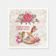 Serviettes en papier de Noël festives. L'arrière - plan est un collage de style vintage avec une image défraîchie de roses roses, de feuilles verts et d'écriture française. Au-dessus se trouve un joli bouquet de noël poinsettia et un cheval victorien à bascule entouré de jolis pivoines roses. Le texte dit voeux de Noël.