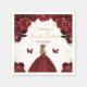Cette serviette élégante et glamour en sweet sixteen présente une belle princesse aux cheveux blonds dans une robe rouge foncé. Le texte combine écriture manuscrite et polices sans serif modernes pour un look élégant et sophistiqué. Les arrangements floraux, papillons et confettis d'or créent un mélange parfait de rustique et de chic. Graphiques par www.etsy.com/uk/shop/SunflowerDayLove