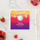 Élégante serviette en papier d'anniversaire avec étoile argentée suspendue, boule de Noël et lampes à cordes ampoule sur un arrière - plan multicolore dégradé de peinture.