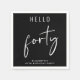 Élevez leur fête de 40e anniversaire avec ces serviettes noires chic avec "bonjour quarante" dans un mélange de lettrage blanc simple et un script blanc moderne.