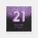 Serviettes d'anniversaire noires et violettes. Avec une parties scintillant violette étonnante et violet 21 en typographie de ballon sur un arrière - plan noir. Facile à customiser avec vos détails.