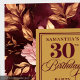 Célébrez un jalon dans le style avec ces serviettes en papier de 30e anniversaire de couleur boho bordeaux, rousse et or. Conçues dans un style boho fleuri élégant, ces serviettes ajoutent une touche sophistiquée et festive à toute célébration d'anniversaire. Ces serviettes, aux fleurs luxuriantes bordeaux et rousses aux accents dorés chatoyants, sont parfaitement assorties à un décor de fête du 30e anniversaire, des tables aux desserts. Leur aquarelle dynamique apporte une esthétique chic et moderne tout en gardant la fête chaleureuse et accueillante. Fabriquées avec du papier de haute qualité et durable, ces serviettes sont pratiques pour servir des collations, des desserts ou des boissons tout en rehaussant le thème général de la fête. Idéal pour les réunions intimes et les grandes fêtes, il s'agit d'un établissement élégant que les clients remarqueront et apprécieront. Faites-vous plaisir en célébrant votre 30e anniversaire avec ces serviettes en papier fleuri boho, un mélange parfait d'élégance, de couleur et de fonctionnalité qui rend votre fête mémorable.