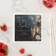Stylish New Year's Eve party napkins feature a champagne glass, clocks, confetti and fireworks on a midnight blue background with your party details in chic lettering. MATCHING items in our collection.
