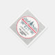 Vacances chic et festives Joyeuses serviettes de Noël avec une parties scintillant argentée scintille la bordure et l'arrière - plan blanc. Les mots "Joyeux Noël" sont écrits dans un texte rouge gras. La serviette est décorée dans un gris tourbillonnant et soigné, avec un sapin de Noël, deux rennes et des billes. Au bas de l'autocollant se trouvent les mots "avec amour de" en gris, et votre nom de famille en noir.