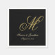 Ces élégantes serviettes en papier mariage monogramme noir personnalisées ajouteront une touche de classe à vos lieux de réception de mariage. Le modèle design chic présente l'initiale monogramme du nom de famille du marié ainsi que les prénoms de la mariée et du marié et la date du mariage en faux or pour personnaliser sur un arrière - plan noir simple. Consultez notre boutique I Love Weddingz pour en savoir plus sur cette collection. Conçu par Susan Coffey.
