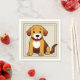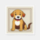 Joli chien aux tons bruns, assis. Dans le style cartoon, avec un collier.