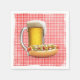 Chaud chien et tasse de bière sur un arrière - plan blanc et rouge en vichy. Arrière - plan peut être modifié.