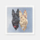Térriers écossais roux et noirs sur fond bleu. Venez visiter le magasin de Maggie Ross Scotties pour voir tous les nombreux modèles saisonniers mettant en vedette des Scotty Dogs roux et noirs créés à partir de mes œuvres originales. Les modèles sont personnalisables grâce à notre outil de texte facile et sont disponibles à l'achat sur des objets de nouveauté, des cadeaux et des vêtements ! Arooo!