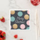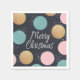 Une serviette moderne de Noël aux points festifs colorés - parties scintillant dorée, rose et bleu. L'expression "Joyeux Noël" est placée dans une police manuscrite fantaisiste.