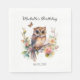 Des serviettes en papier d'anniversaire personnalisées avec le tableau d'une petite chouette mignonne assise parmi les fleurs dans les branches d'un arbre. Personnalisée avec le nom de l'invitée d'honneur et sa date de fête. Contactez-moi pour obtenir de l'aide sur vos personnalisations ou pour demander des produits Zazzle correspondants ou coordonnés supplémentaires pour votre célébration.