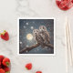Paire de chouettes perchées sur une branche d'arbre avec une pleine lune et étoiles dans un ciel bleu foncé.