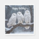 Chouettes blanches enneigées en flocons de neige sur une branche d'arbre d'hiver pour Noël. Le texte peut être modifié ou supprimé.