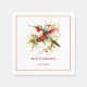 Amusez vos invités avec ce design de serviette de fête de vacances avec une belle aquarelle thème Noël colibri entouré d'un bouquet de fleurs d'hiver sur un arrière - plan blanc. Typographie rouge personnalisable.