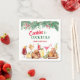 This Christmas party napkin displays festive cocktails and plates of Christmas cookies underneath a mistletoe bough. Perfect for a Christmas cookies and cocktail party, holiday party, office holiday party, Christmas-time birthday party, or a stock-the-bar holiday celebration. Available with matching products.