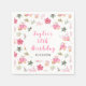 This elegant and festive napkin features watercolor hot cocoa, gingerbread cookie jar, pink poinsettia flowers, holly berries and foliage. The text combines handwritten script and sans serif fonts for a stylish and modern look. This is perfect for Christmas birthday parties.