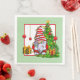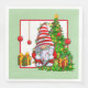 A Green Christmas Tree With Gnome And Lights Paper Napkin For That Holiday Party.