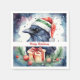 Paper napkins featuring a cute watercolor crow with a Christmas hat. Customizable.