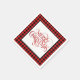 These standard style napkins are shown in the cocktail size. Shown with a red and black buffalo plaid border around the perimeter, an inner black border and center is white. Large fancy script of Merry Christmas over the center. Coordinates with the red and black buffalo plaid placemats.