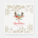 serviettes de fête d'anniversaire de la fille Reindeer de Noël avec un visage de rennes mignon et des flocons de neige de parties scintillant d'or.