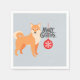 Salutations de vacances de votre race de chien préférée. Chien Shiba Inu avec le texte "Joyeux Noël" et ornement de Noël rouge.