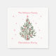 Christmas Tree Party Red and White Paper Napkins designed your family name and a festive Christmas Tree with Christmas stars on a white background. The text includes: Your Family Name and Christmas Party. To personalize, simply insert your text into our easy template, replacing the sample.