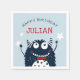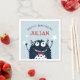 Ajoutez un charme personnalisé à la fête d'anniversaire de votre petit monstre avec ces adorables serviettes personnalisées. Design présente un mignon monstre de dessin animé souriant arborant une cravate arc rouge dapper, sur un arrière - plan bleu ciel. Personnalisez avec un message et un nom personnalisés ; avec "Joyeux anniversaire". Conçu pour correspondre à notre collection d'approvisionnement pour les anniversaires de enfants de Little Monster.