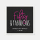 Cette amusante conception de serviette de papier pour la fête d'anniversaire pour elle est tout à propos de célébrer le 50ème anniversaire. Le texte dit Fifty & Fabulous en rose et blanc et l'arrière - plan est noir. Il y a aussi de l'espace pour des textes personnalisés, comme le nom de la femme d'anniversaire et la date de célébration.