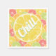 Le mot Chill sur les serviettes en papier comporte une grande tranche de citron sur un collage de citrons, de citrons, de limes, d'oranges et de tranches de pamplemousse. Un complément amusant à votre décor de maison d'été, fête ou offrir en cadeau.