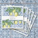 "Serviettes de Fêtes des mariées élégantes bleu floral vert citron". Style moderne d'influence asiatique vintage, peint à la main en aquarelle acrylique sur toile par Audrey Jeanne Roberts, artiste et designer de renommée internationale. Un motif de teinture Shibori en bleu et blanc découvre les citrons, les fleurs de citron et le feuillage pour un thème mariage d'inspiration agrumes frais. Droit d'auteur .