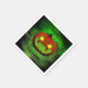 Une lanterne de crêpe orange éffrayante aux yeux jaunes brillants dans un rire bien dans un brouillard vert éclatant sur Halloween.
