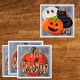 Ce dessin graphique, a été numériquement édité, pour mettre en valeur, ce citrouille vibrant, orange et noir, avec menaçant, à tendance grinchante, vers la droite, contre un bleu-gris, arrière - plan, avec Happy Halloween, Emblazonné, à l'avant, en macabre, de couleur pâle, lettré.