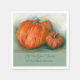 Cette serviette en papier facilement customisée est imprimée avec mon oeuvre originale créée dans des pastels doux représentant trois jolis citrouilles oranges dans un jardin d'automne.