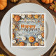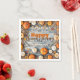 Cette serviette en papier Thanksgiving personnalisable présente un design automnal chaleureux. L'arrière - plan est un motif rustique en plaie de bois gris, encadré de citrouilles orange et blanc, de feuilles d'automne colorées et de branches tordues. Le centre affiche "Bon thanksgiving". Fondamentalement, la serviette est entièrement personnalisable, vous permettant d'ajouter un nom de famille ou un message personnel sous le salut. Cela en fait à la fois un accessoire de table pratique et un souvenir unique et mémorable pour votre fête de vacances.