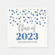 Serviettes de graduation personnalisables pour classe de 2023 avec motif de confetti bleu et argent glamour.