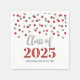 Serviettes de graduation personnalisables pour classe de 2025 avec motif glamour argent et confetti rouge.