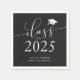 Fourniture élégante et simple de la fête de graduation! Célébrez l'accomplissement du diplômé en style avec cette serviette de papier de fin d'études. Il dit "Classe de 2025" en police de caractères de script contre un arrière - plan noir. Personnalisez ce produit en ajoutant leur nom et le nom de l'école.