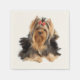 Yorkshire Terrier de classe spectacle avec arc rouge sur arrière - plan blanc