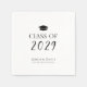 Classe de typographie moderne de 2025 et bonnet de graduation en noir et blanc, élégant et amusant, de grandes serviettes personnalisées pour la fête de graduation.