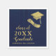 Ces serviettes personnalisées en bleu marine et or ont été conçues pour une fête de remise de diplômes de 2023. Utilisez le modèle pour taper un nom et une année (si autre que 2023). Les illustrations du casquette et du diplôme du diplômé rendent ce design unique et élégant.