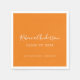 This graduation napkin offers a est à la mode de conception minimale on orange background. The name appears in a popular handwritten style text with plain text for the graduating year and school The orange and can be change d to any color by choosing customize.