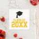 Décorez votre table de fête avec ces Black and Gold Class of 2024 Graduation Party Napkin. Personnalisez avec l'année de cours de votre diplômé. Il est doté d'une "Classe de 20xx" en or avec un casquette noir gris.