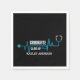 Un stéthoscope bleu et blanc moderne unique et élégant en forme de Heartbeat, Custom Graduation Name Année classe d'un diplômé de 2025. Serviettes de collation classique pour l'étudiant diplômé. Personnalisez avec votre classe de fin d'études, le nom de l'enfant diplômé et l'école sous le casquette noir. Élégante typographie or pour un parent.