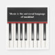 Gros plan sur un clavier de piano noir et blanc avec citation musicale.
