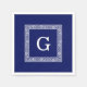Serviette En Papier Clé grecque blanche bleue marine #1 Monogramme enc